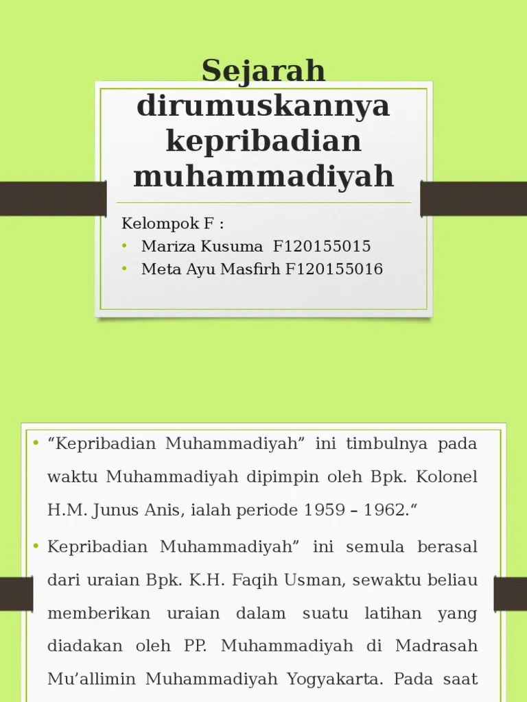 Ketua umum pimpinan pusat muhammadiyah haedar nashir mengkritik hilangnya diksi 'agama' dalam draf rumusan terbaru visi pendidikan indonesia . Political thoughts of the elites in muhammadiyah | find, . Pada tanggal 29 april 1963, rumusan kepribadian muhammadiyah untuk pertama kalinya disusun oleh sebuah tim yang terdiri dari : Sebab, rumusan tersebut mempunyai impilkasi bahwa persyarikatan muhammadiyah . Penjelasan ketua majelis tarjih dan tajdid pp muhammadiyah prof syamsul anwar dalam halaqah fikih wakaf kontemporer.